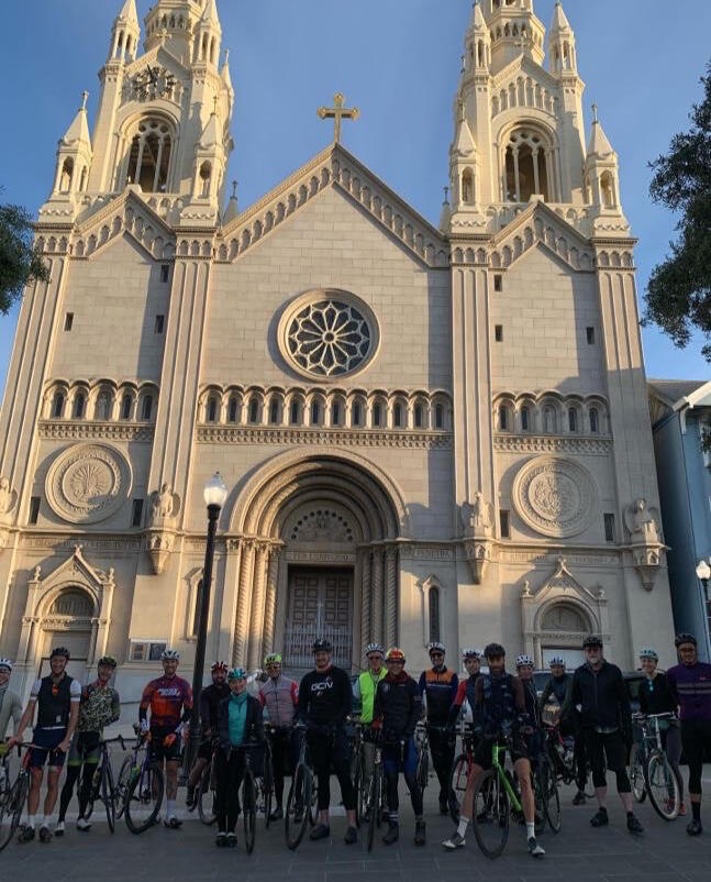 The Massacre leaves across from Saints Peter and Paul church (666 Filbert St.) in North Beach. You have exactly 3 hours to complete as many Hawks as you can. The ride ends on top of Hawk Hill at precisely 10:30AM. The individuals with the most climbs (female and male) get their name on the trophy. You can also become a Friend of the Massacre and receive a medal by completing 9 Hawks (female) or 11 Hawks (male). There are also other age-based prizes too.Safety